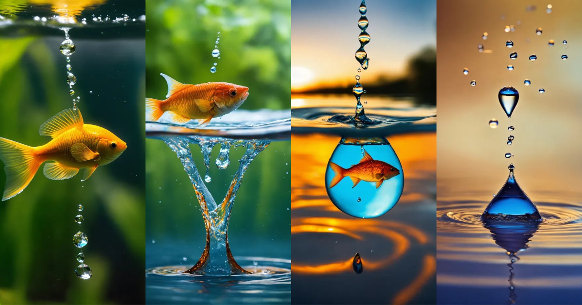 Lexica The water drop falls below the water surface, it morphs into a